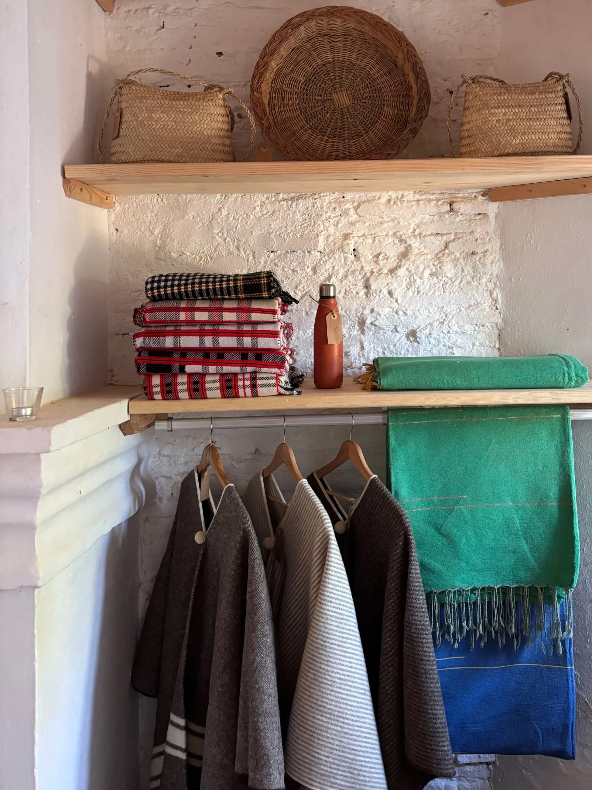 The Merino Wool Jumpers will be the centre piece in our recently opened Taramona Farm Shop. When you come and stay with us, be it on a ride with George or to enjoy the house, the shop is there for you to browse. It’s a representation of artisanal and local traditions from the area and Items range from dark green, hand painted bowls from Granada, hand woven woollen ponchos from Grazalema, locally made deer antler pocket knives, traditional riding boots from Ubrique and delicious chorizos, cheeses, honeys, Seville orange marmalade and prized Jamon Iberico.